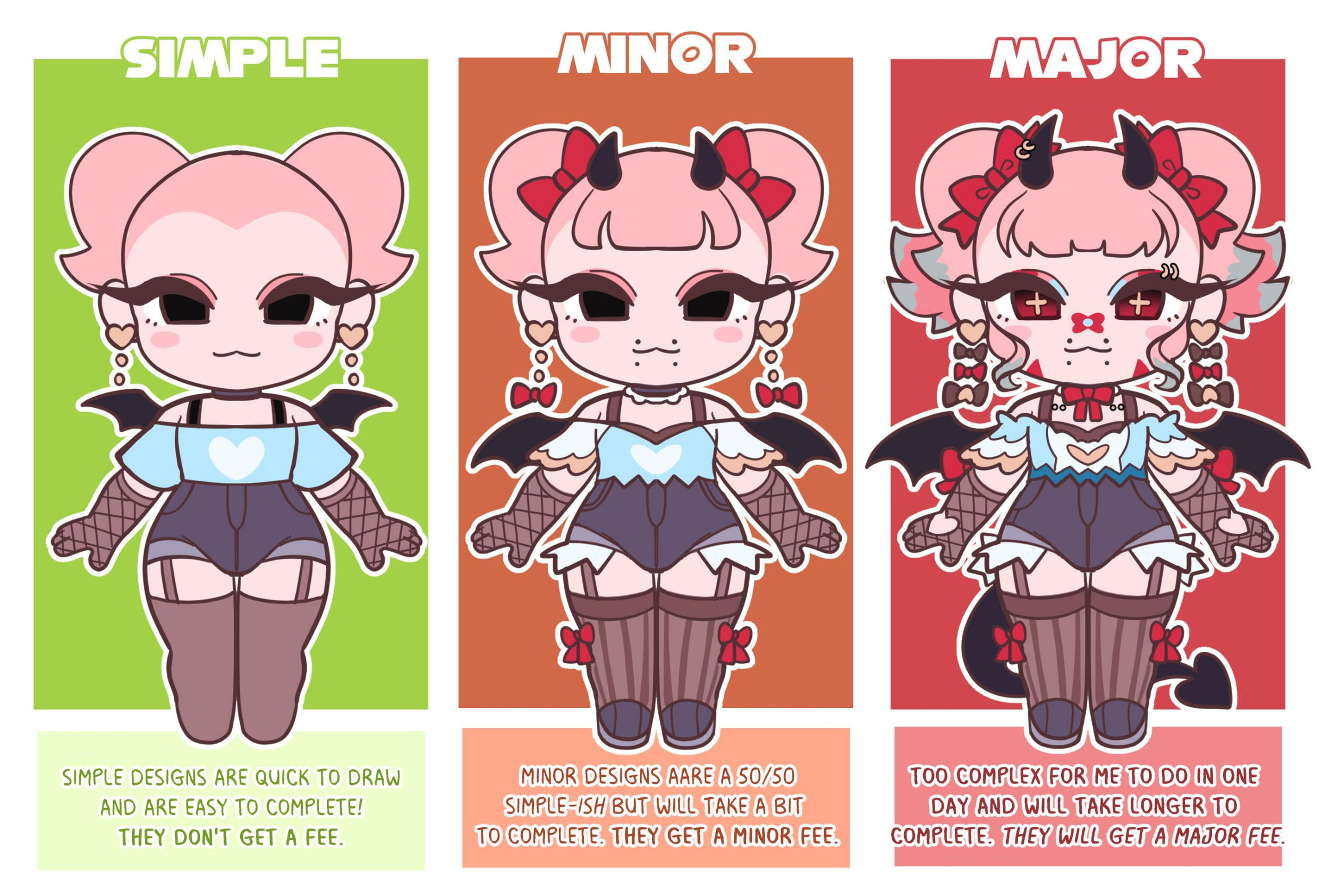 ---------✦ At the moment I will not be doing alternatives outfits. This may change in the future.✦ As for a nude toggle this may be a possibility. Please make sure to ask first.✦ As always I ask for current/updated reference sheets. What I see is what I will draw. You are responsible for making sure that you send me the correct information. I will not be doing any character designing! Yes should it arise that a detail is missing I will not have any issues with drawing that in ,however , I still require proper reference representation.✦ For the expression let me know if there's a certain way you'd like for me to draw them. As everyone's character is different I'm sure you'd like the expression to match your character. You may include references if you'd like. (Also let me know what you want me to do with their hands legit if you don't care that's fine too lmao)
